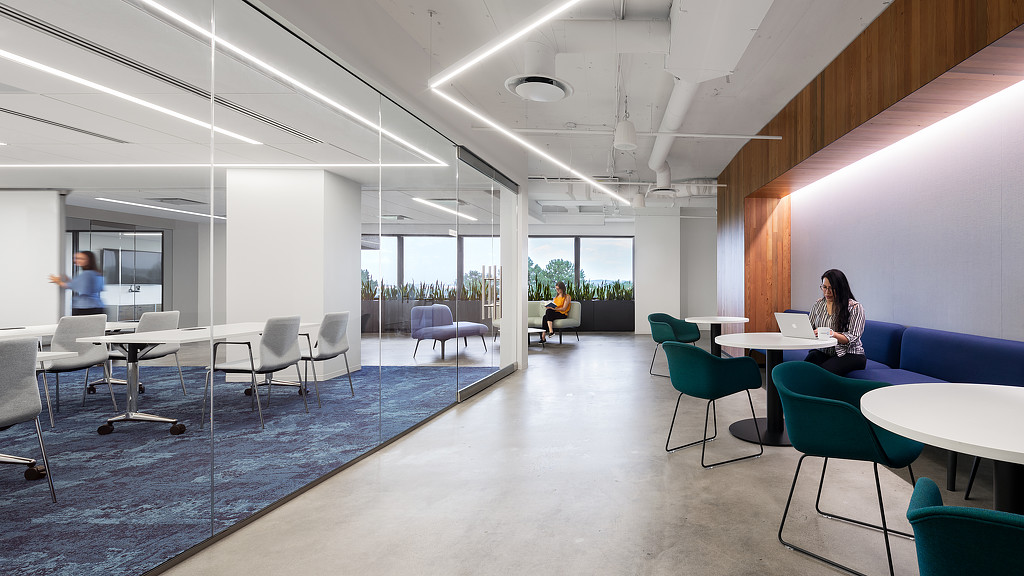 Attaining LEED Gold certification at its Crystal City workplace marked the first step in Conservation International (CI)'s extensive commitment to create an environment that holistically embodies the organization's mission. The environmental nonprofit's mindful approach impacted the design, sustainability elements, and overall building improvements, going beyond LEED requirements. CI's dedication to reducing its carbon footprint began with the commitment to repurpose its existing space rather than build out a new space — consolidating two floors into one open-plan floor, while also pushing for overall tenant improvements within its office building. Utilizing change management techniques to bolster this shift to an open plan, the floorplan mimics the organic growth of nature to inspire impromptu encounters in a space that has no prescribed central path. Each area of the workplace is carefully designed, weaving different elements of the CI story together through the rich layering of visuals and materiality.