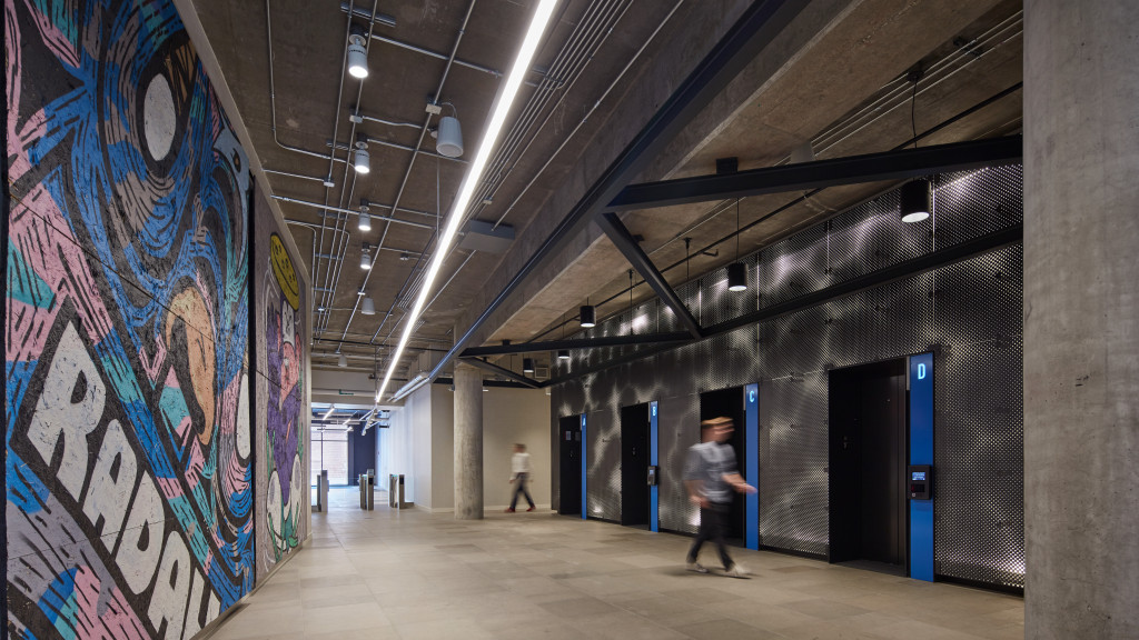 To attract emerging tech companies to this designated “Innovation District,” developer Sterling Bay engaged Gensler in reviving work on a previously abandoned development to create a unique and desirable workplace for tech tenants. The building comprises two visually distinct parts: its dark brick, five-story base uses a vernacular authentic to the district, reflecting and reinterpreting forms and materials of the surrounding warehouses; the upper four floors are lighter and more contemporary, with a façade of aluminum and glass. While the floor plates are optimized for office space, new amenities create choice for future workers. A range of outdoor spaces are incorporated, including a grade-level courtyard, communal roof deck and multiple tenant terraces.